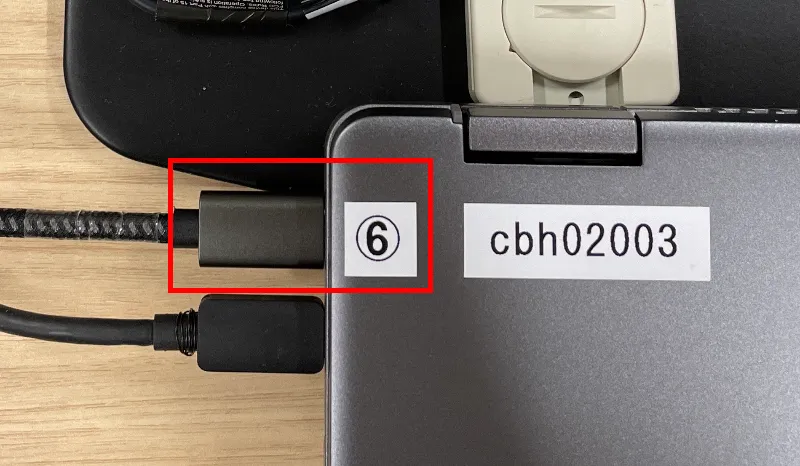 - ドックに接続されていない方のUSB Type-Cケーブル:Chromebookに固定されています.外したり,その席のChromebook以外に接続したりしないでください.
