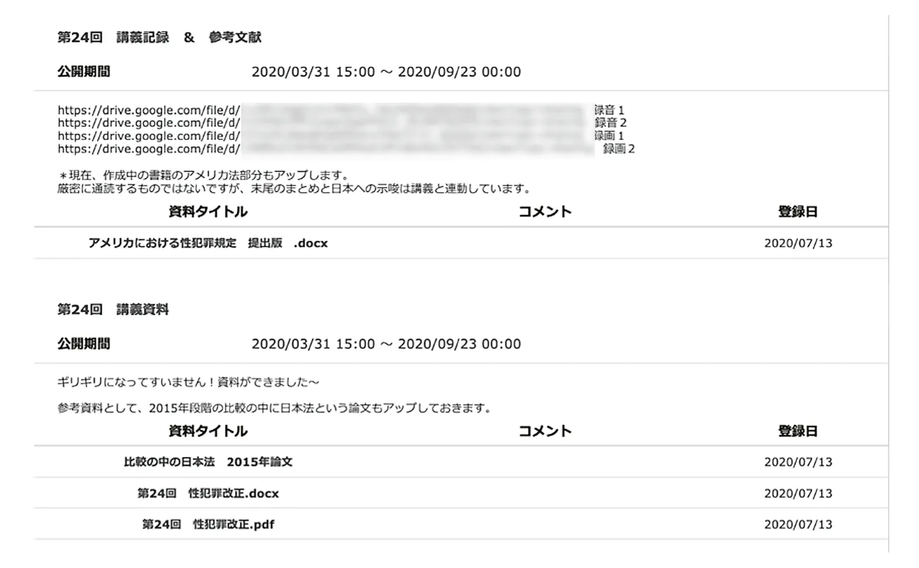 5 月以降は通常のレクチャー形式に戻しました。学生にリラックスして授業を受けてもらうためという意図もありましたが、教えるべき内容が多かったことも理由です。扱う内容としても、横領、背任、性犯罪など、学生にとって馴染みがなかったり気が進まなかったりして議論しづらい内容でした。授業形式を参加型にするかレクチャー型にするかは、扱う素材とのバランスも考慮すべきだと思っています。