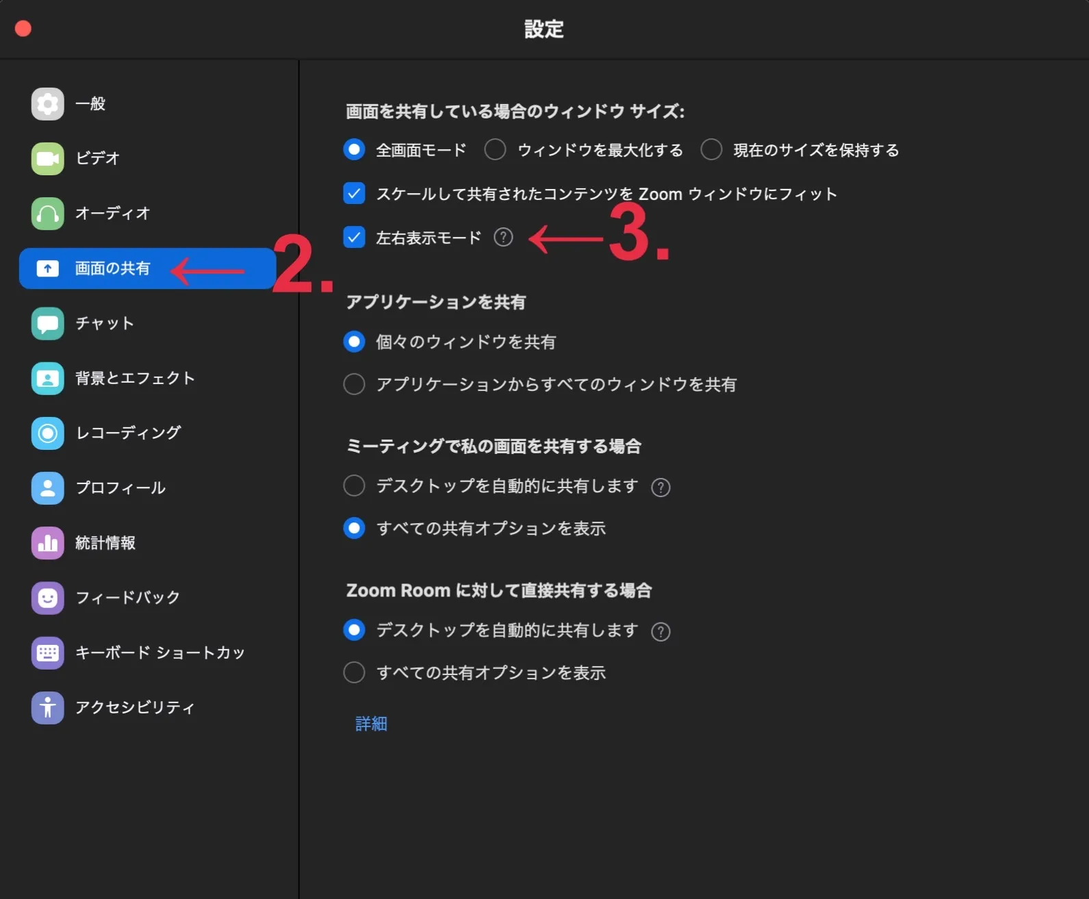 ここでは,画面共有が行われている場合の画面表示の設定方法について説明します.